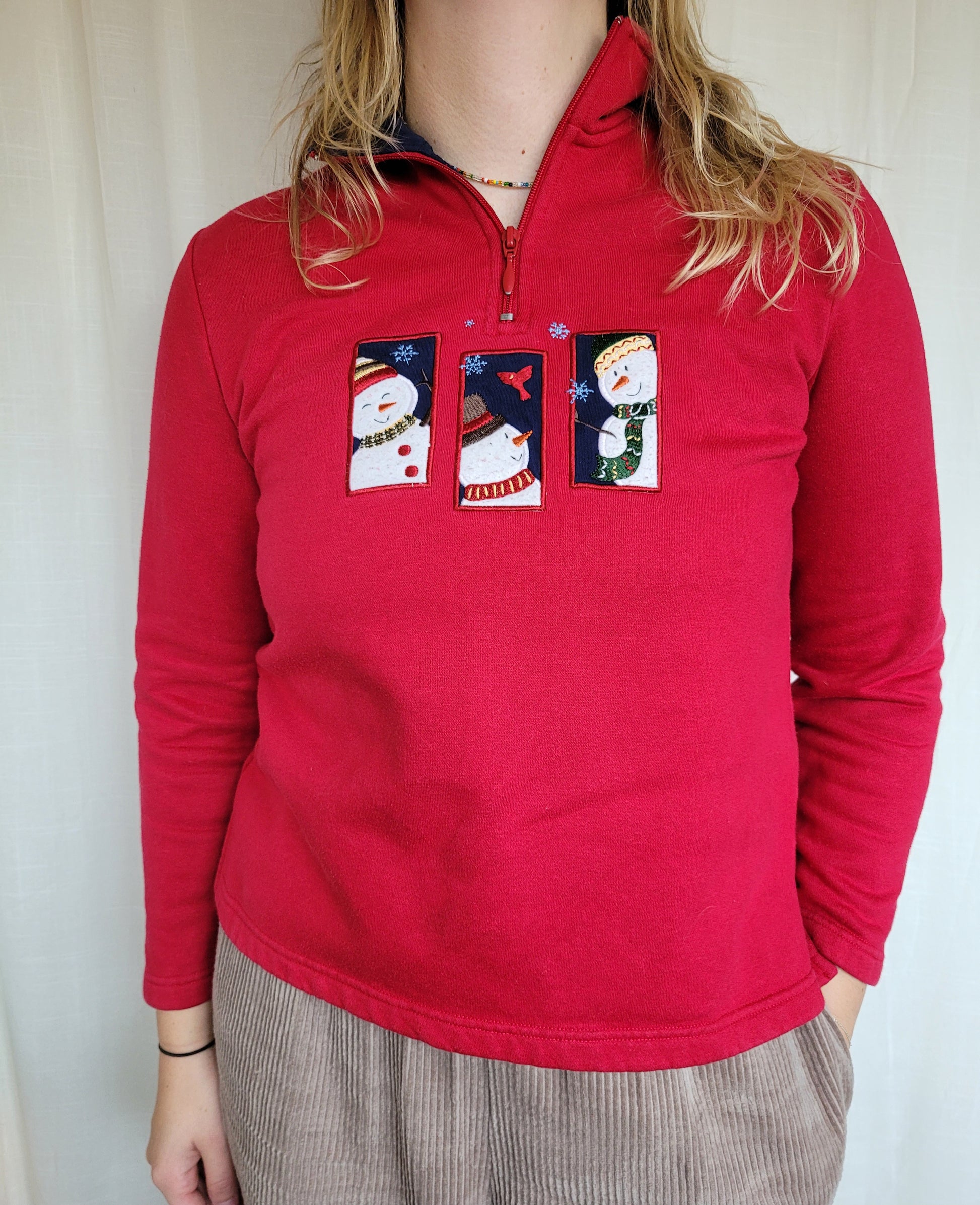 ❄️ Frosty Trio - vintage crewneck with zipper and embroidered snowmen - size S