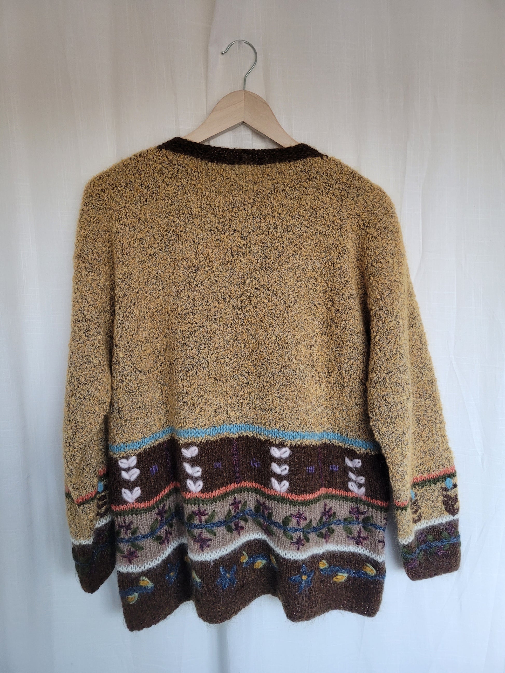 🌾 Tales of the Countryside - vintage knitted cardigan with embroidered village details - size L