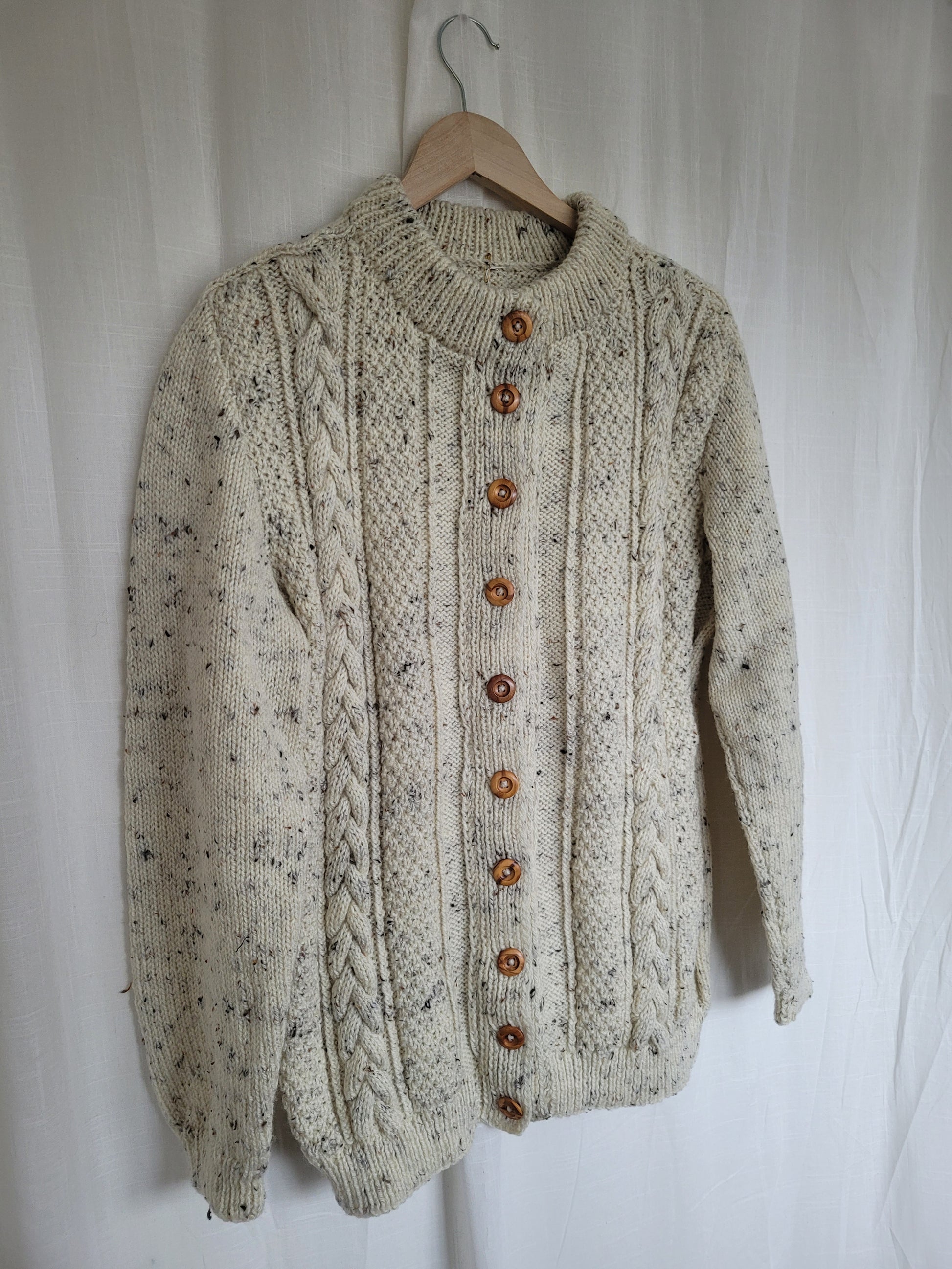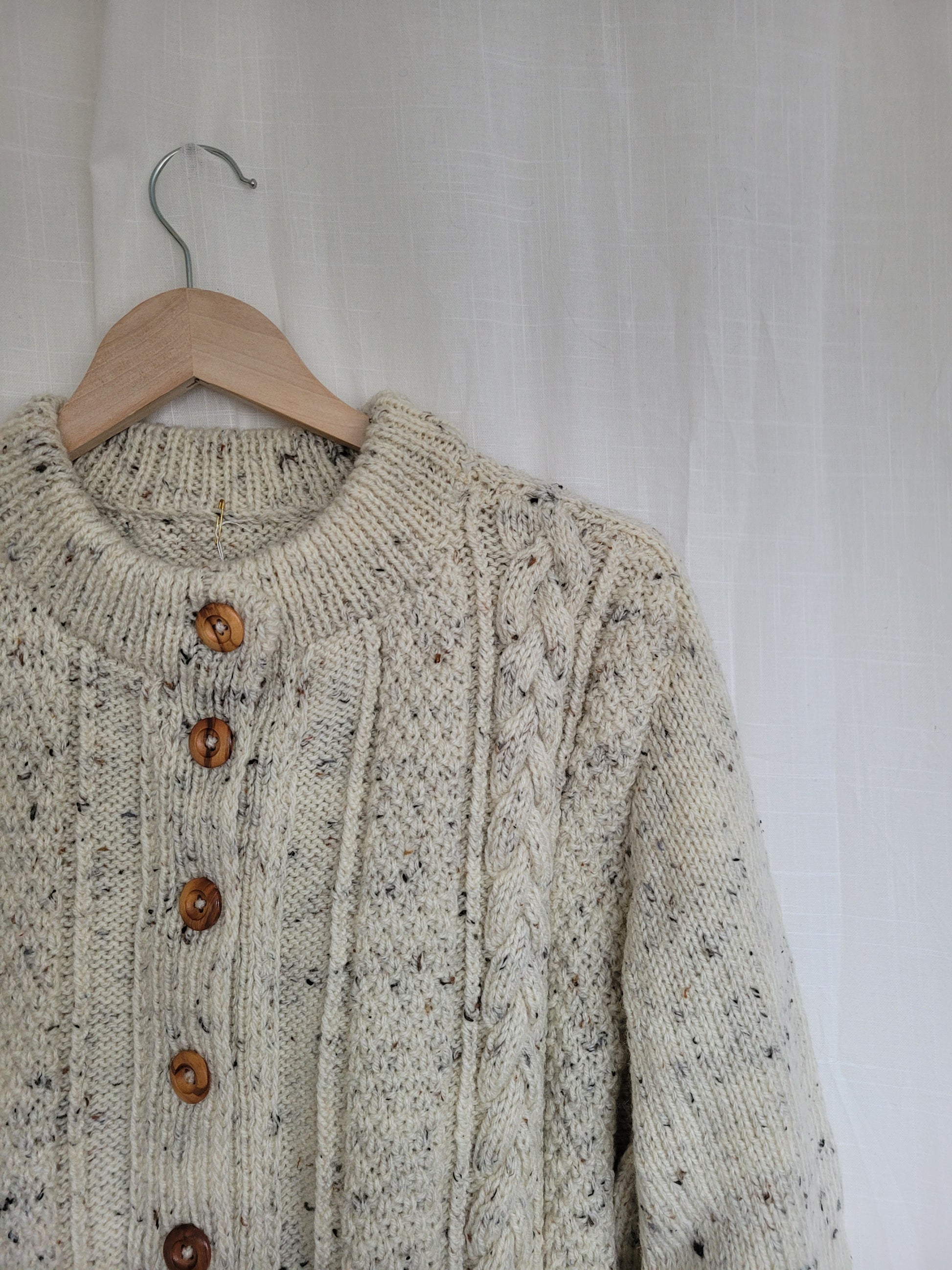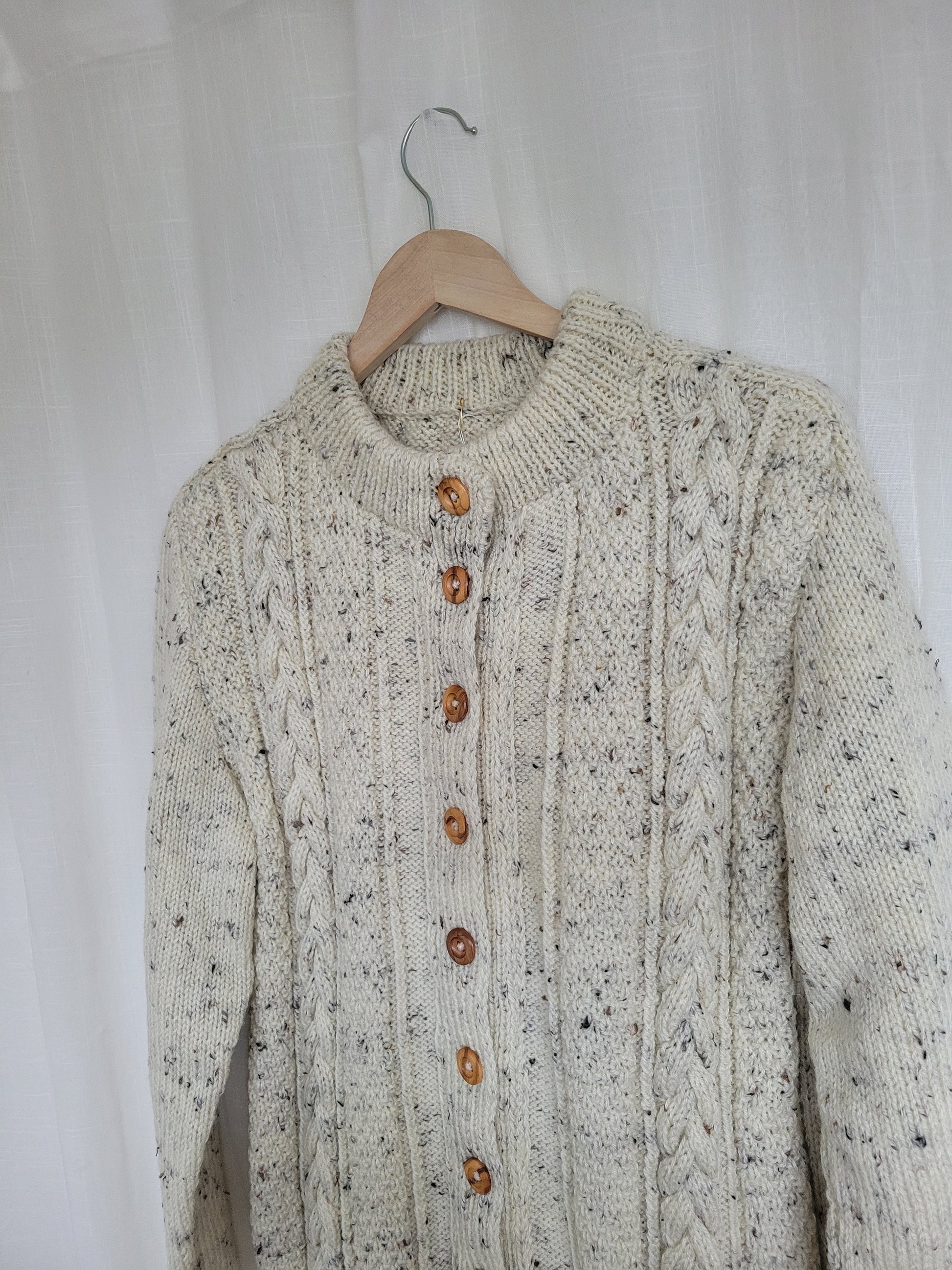🧵 Classic Aran knit with wooden button closure