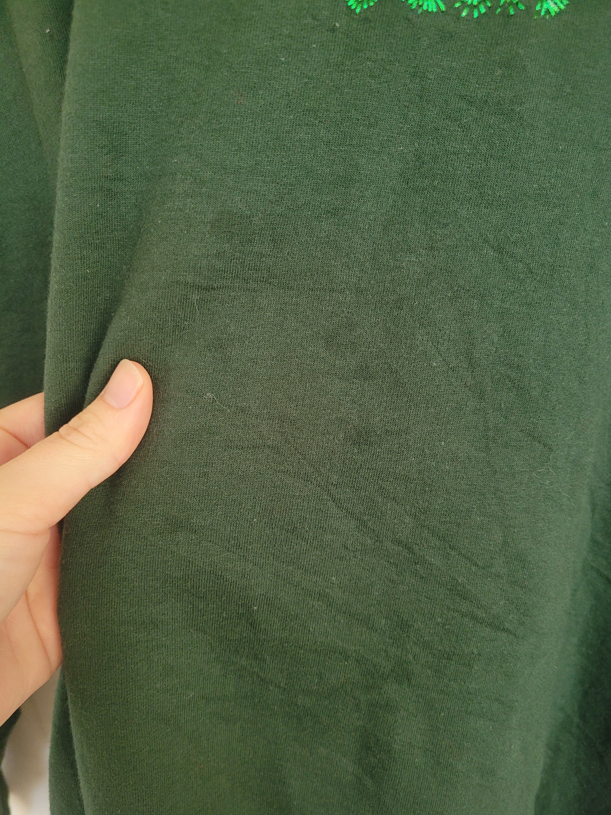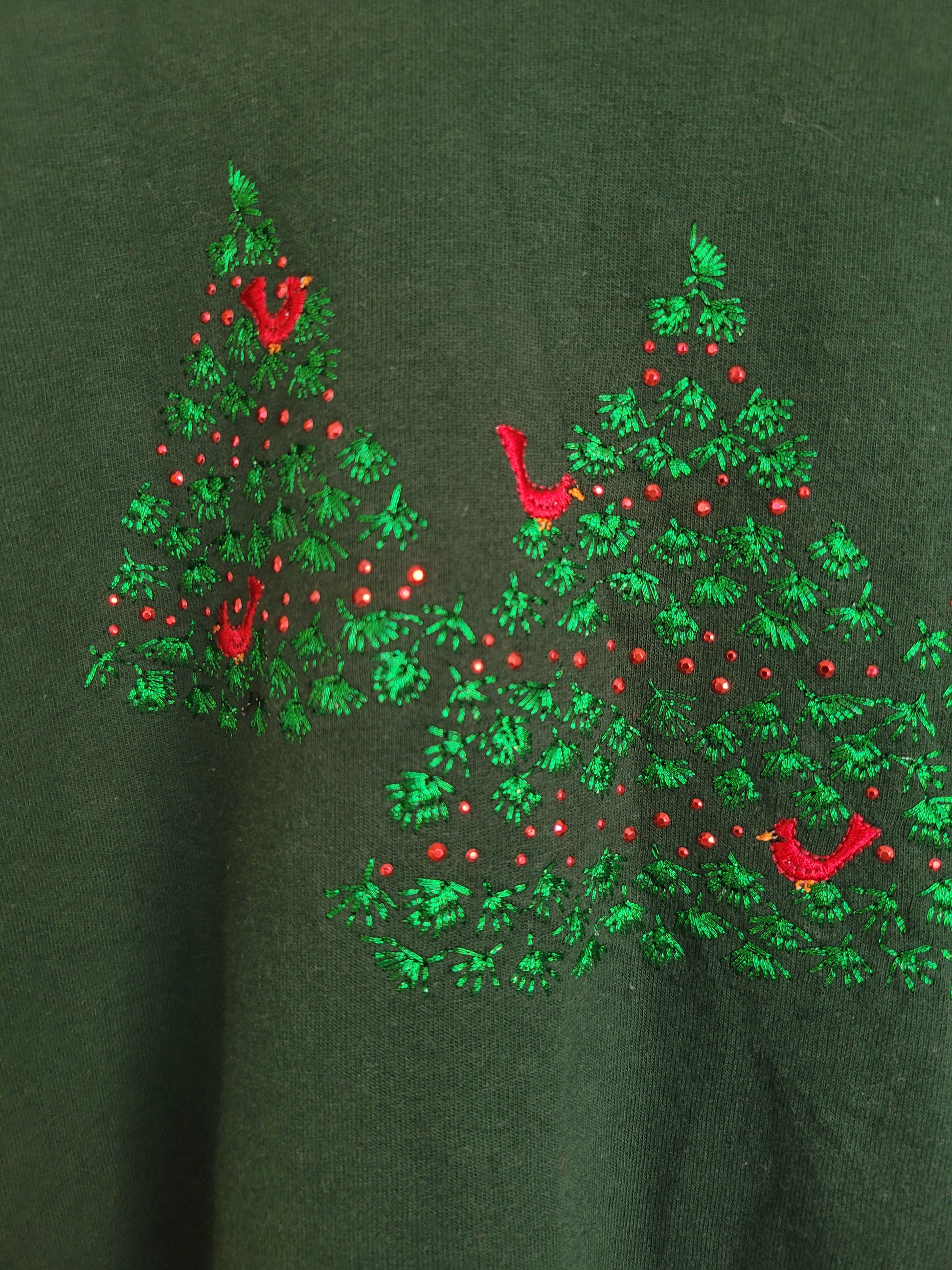 🎶 Tree Serenade - vintage crewneck sweater with shiny Christmas tree images - size L