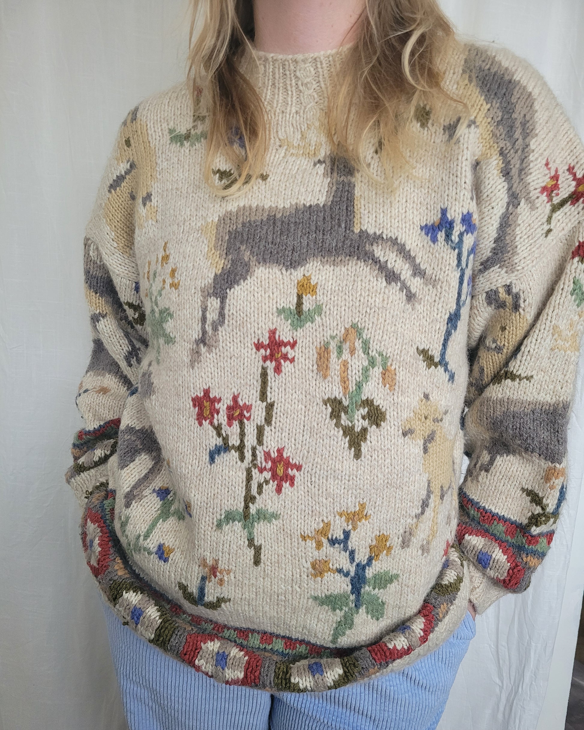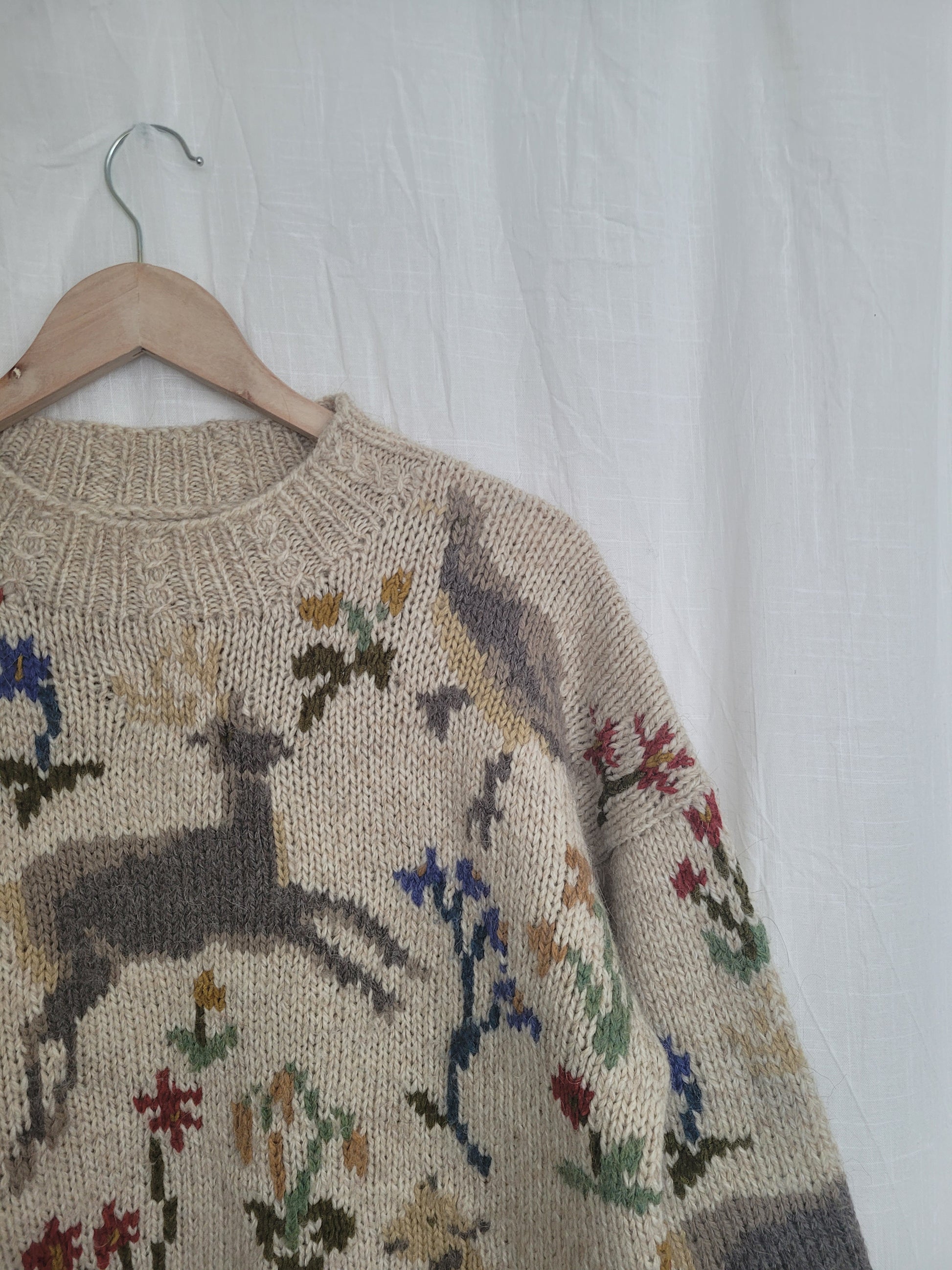 ๐Ÿ”๏ธ Alpine Daydream - vintage knitted sweater with Alpine animal and plant design - size L/XL