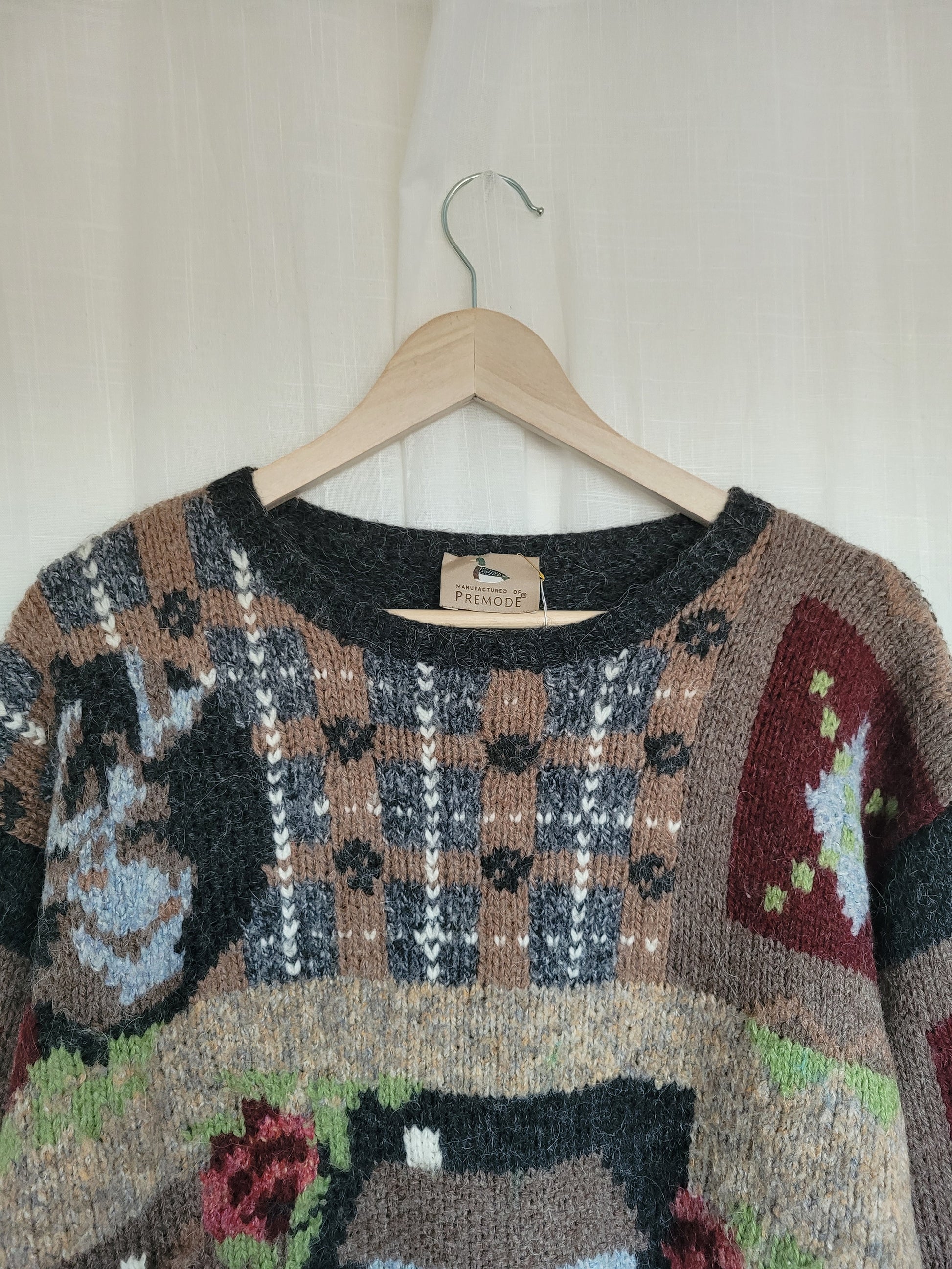 🐑 Shepherd’s Cottage - vintage knitted sweater with cute details - size L