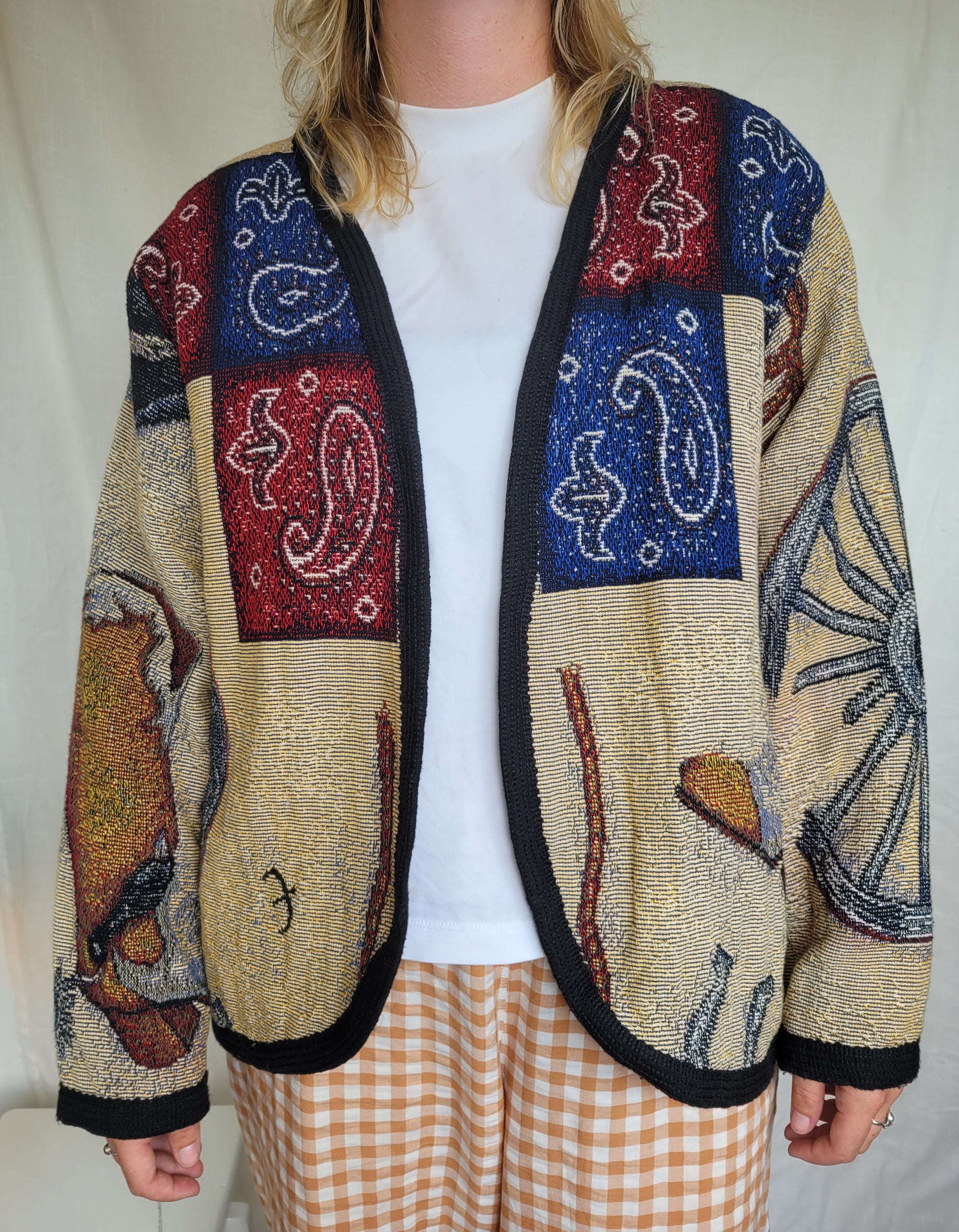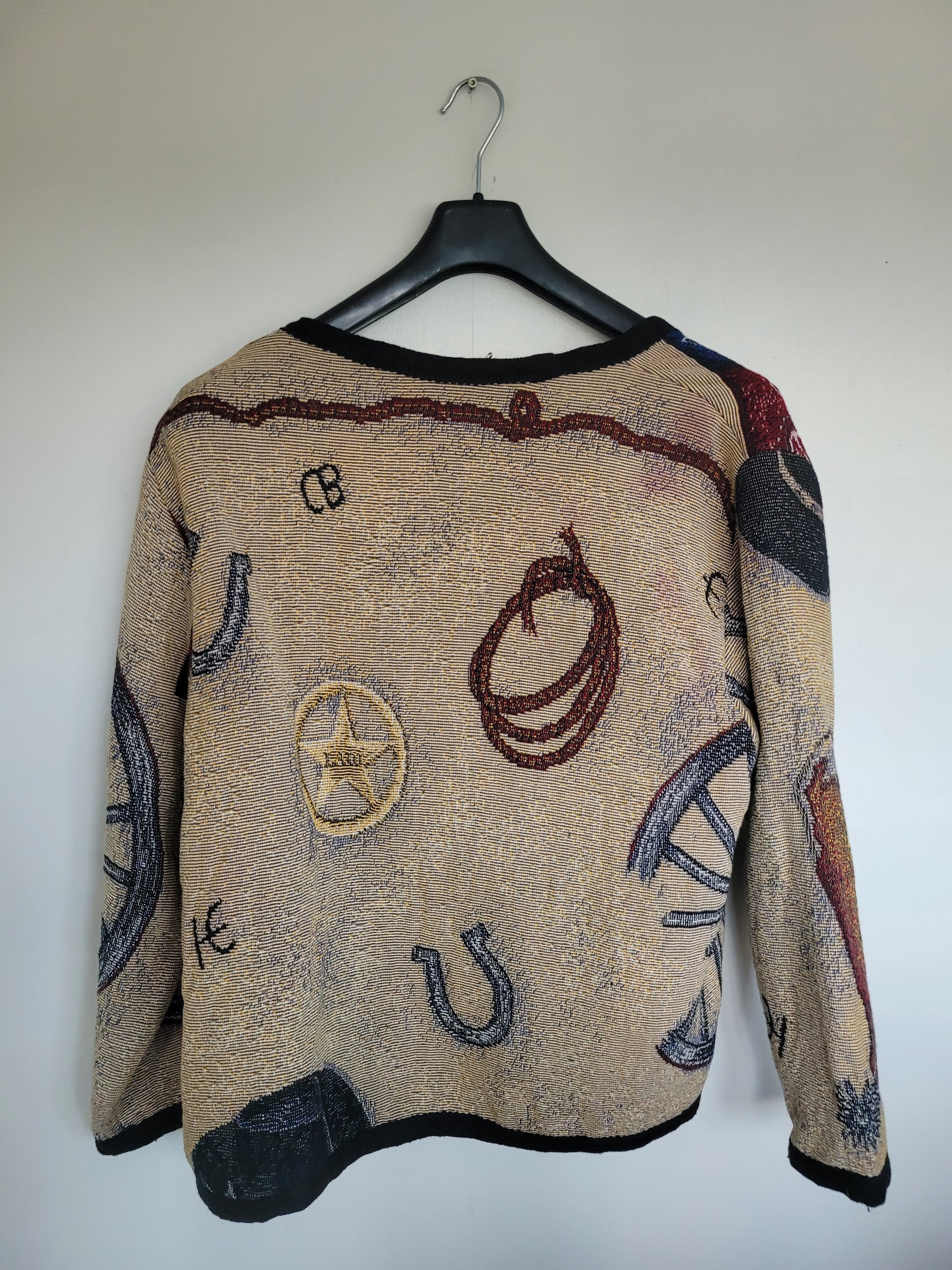 Cowboy’s Keepsake 🤠 - vintage tapestry jasje met verschillende western/cowboy afbeeldingen - maat L
